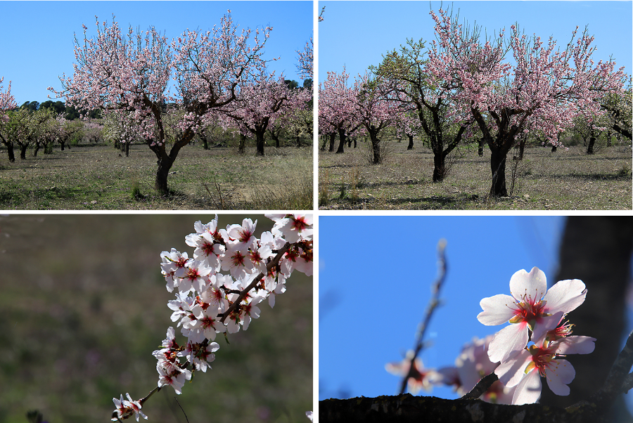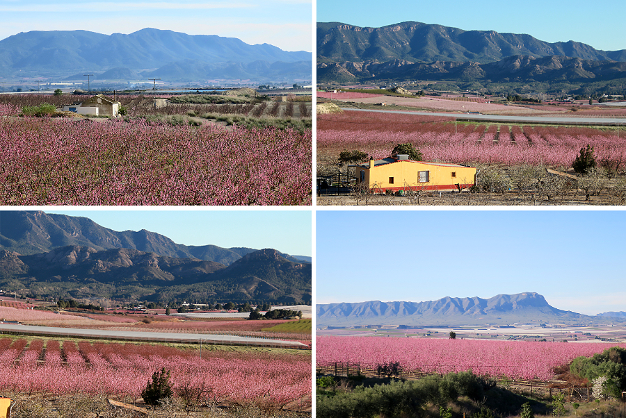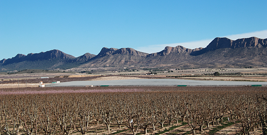 Luego llegaron los campos de almendros, algo que nos sorprendió. No sabíamos que en Murcia se cultivaran tantos. Ahora nos enteramos de que en la Región de Murcia se dedican unas 70.000 hectáreas al cultivo del almendro y que el 93% de ellas se encuentran en terrenos de «secano rabioso». Esto supone que su producción sea escasa, pero que tengan un importante papel en el freno al avance de la desertificazación.