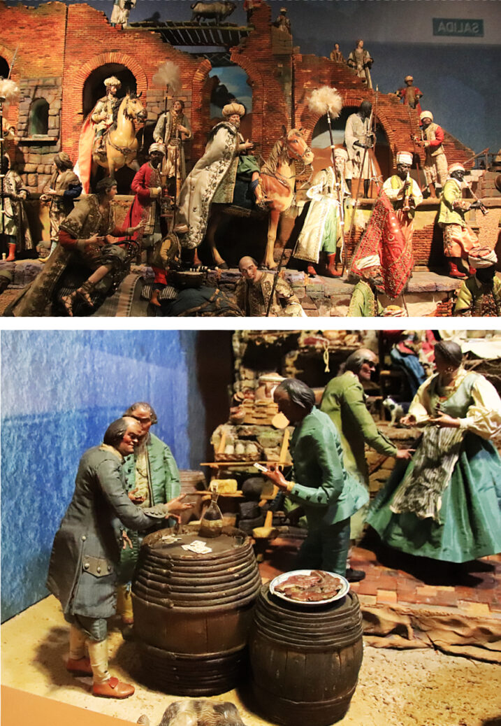 En el Museo hay dos belenes: uno es obra de Salzillo con 556 figuras; el otro es un espectacular Belén Napolitano del siglo XVIII, con 600 figuras y esas escenas costumbristas llenas de pequeños detalles.