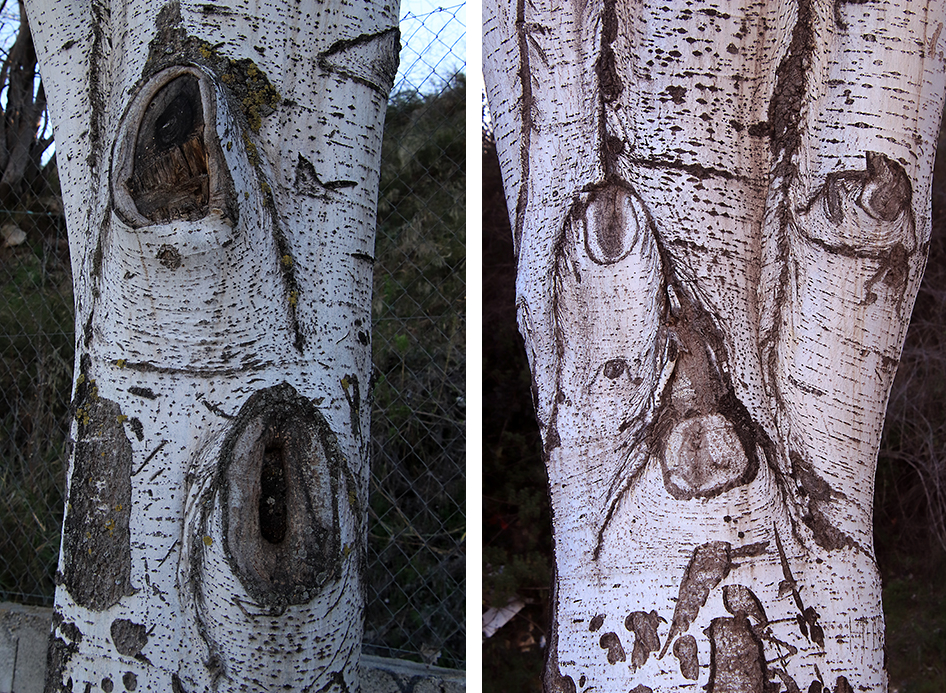 De camino al párking vemos estos árboles, me recuerdan a un hombre que conocimos en la India que se dedicaba a fotografiar troncos de árboles, tenía varios libros publicados. Le imito.