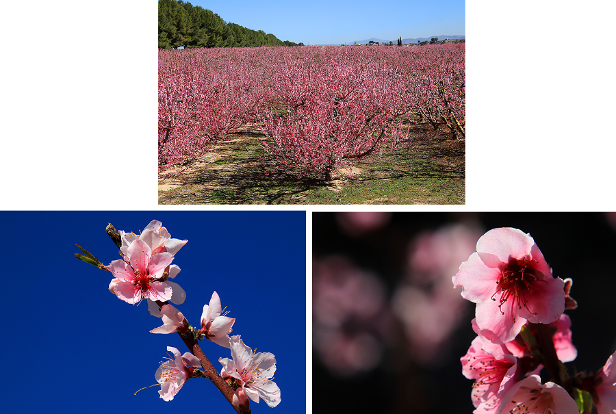 Después de comer, hacemos una ruta para ver los frutales en flor. Nos movemos por el altiplano de Jumilla-Yecla, formado por anchos valles cuya altitud media ronda los 600 metros sobre el nivel del mar y que cuenta con sierras, pertenecientes al Sistema Penibético, que superan los 1.300 metros. Estos valles son atravesados por una red de ramblas, la mayoría de las cuales vierten sus aguas al río Segura.