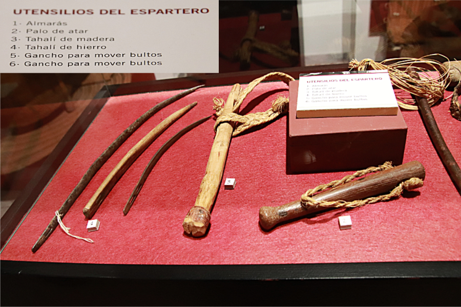 Y, entre las herramientas de oficios expuestas, me llaman la atención éstas de los esparteros por los nombres, claramente árabes, como tahalí y almarás.