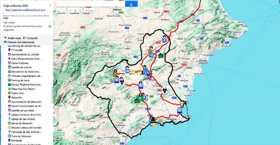 Llega febrero y nos entran ganas de salir de viaje, pero llevamos semanas de lluvia. Nos sentimos como el loro del chiste, sí, ese que pregunta cómo saber si un loro es macho o hembra. El destino pensado para la excursión de este febrero era Badajoz, pero el tren de borrascas que hemos sufrido nos hace cambiar de planes. Así que recuperamos la ruta por Murcia que había preparado el año pasado y que cancelamos por un aviso de DANA. Decidido: campos en flor y mucha Historia serán los protagonistas de este viaje.
