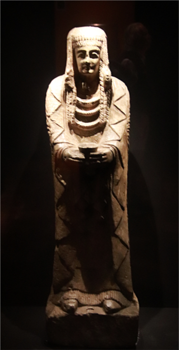 En las salas dedicadas a la Cultura Ibérica destacan los exvotos del Santuario del Cerro de los Santos, uno de los centros de culto ibérico más importantes del Sureste y el Levante peninsular. El templo, datado entre los siglos V y II a.C, estaba dedicado a una divinidad que podría ser una diosa de la agricultura. En él se hallaron numerosos exvotos que se encuentran repartidos por muchos museos. En el Museo Arqueológico de Madrid podemos admirar muchos de ellos, entre los cuales la Dama oferente, de la cual vemos una copia aquí.