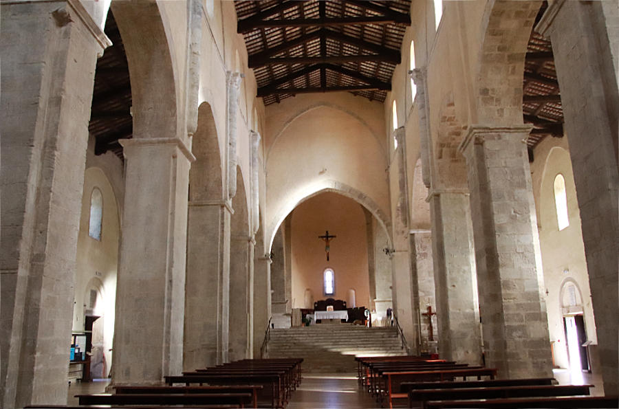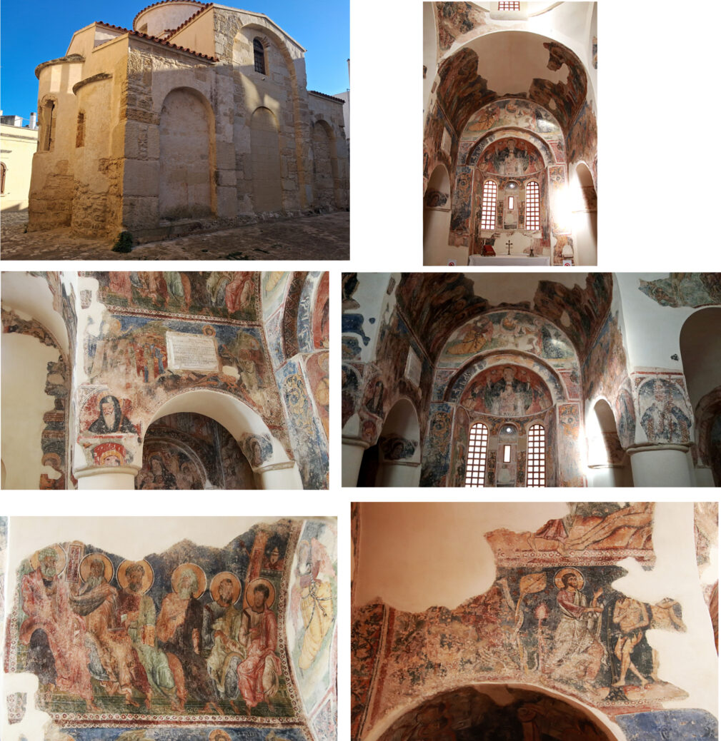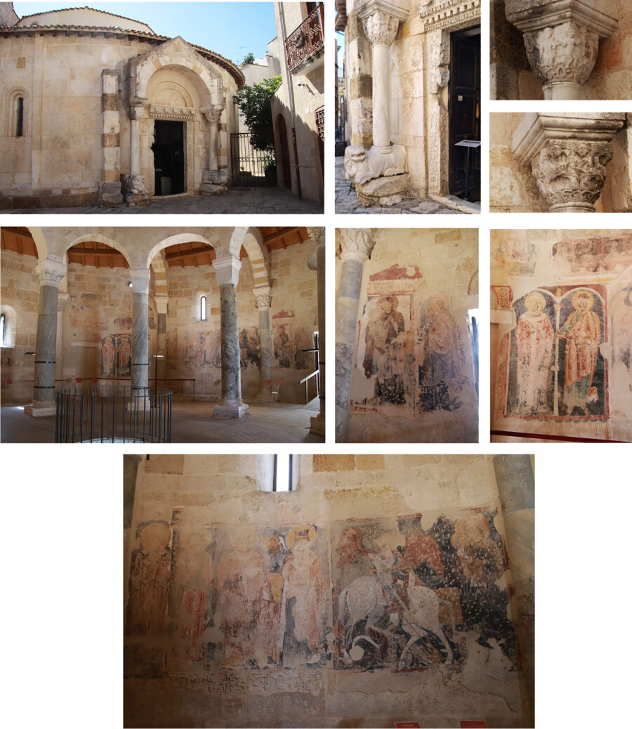 Seguimos hasta la iglesia de San Pedro, la joya de la corona de Otranto. Es una iglesia bizantina de los siglos IX o X, de planta de cruz griega inscrita en un cuadrado. El crucero está cubierto por una cúpula central, sostenida por cuatro columnas, pero no conserva los frescos; sólo se aprecian algunos en las pechinas. La cabecera tiene tres ábsides con espléndidos frescos de estilo bizantino. Al siglo XIV son atribuibles la Natividad de Jesús, Pentecostés y la Resurrección, mientras que la Presentación al Templo y otras figuras de santos corresponden a la última fase del siglo XVI.