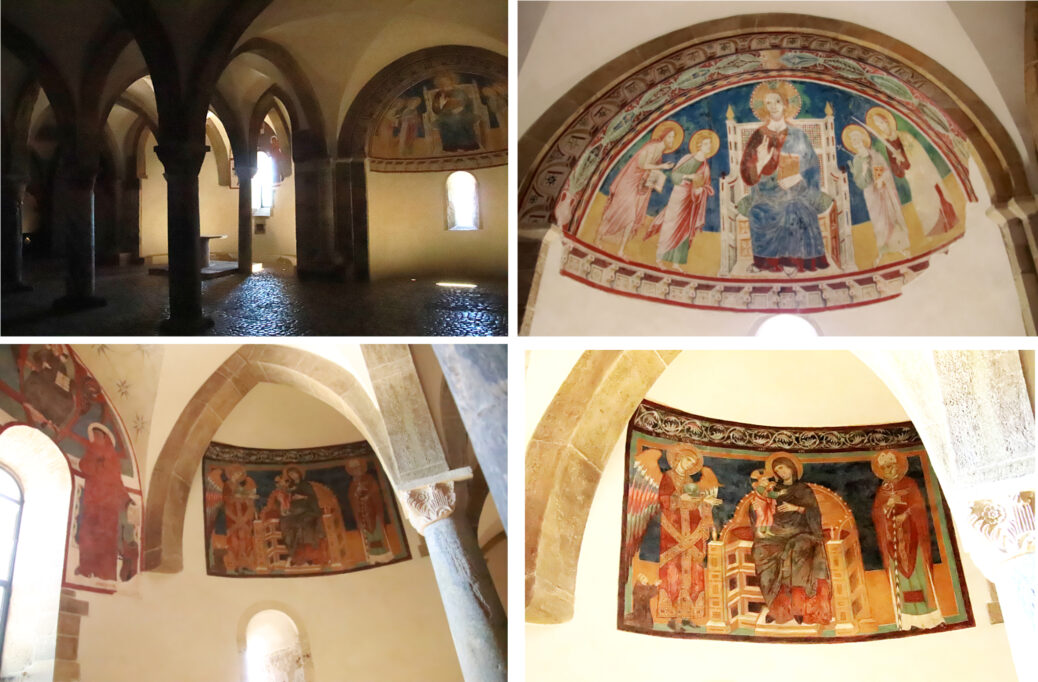 La cripta es una de las partes más fascinantes. Se extiende bajo toda la iglesia y contiene frescos de los siglos XIII al XV.