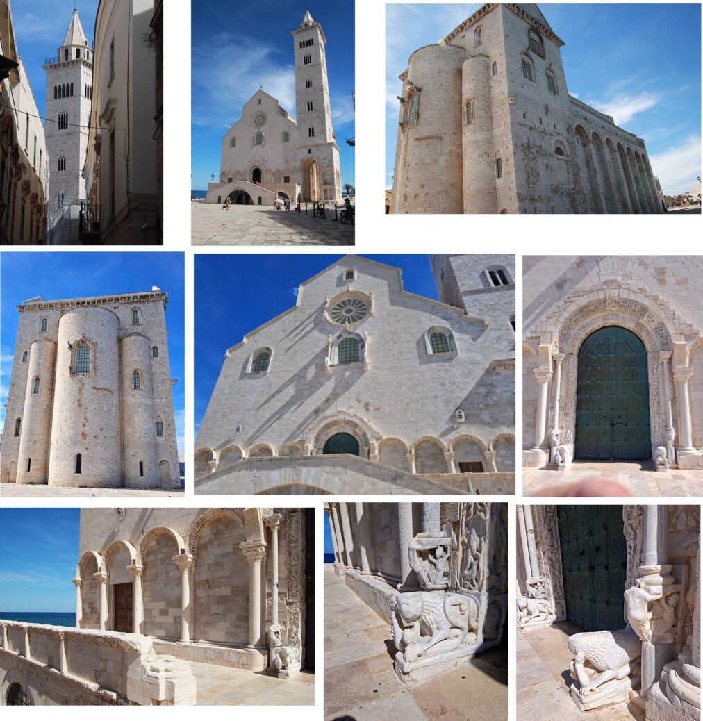 La Basílica catedral de María Santísima Asunción esta junto al mar. Es conocida también como basílica de San Nicolás Peregrino y es una construcción del siglo XII de grandes dimensiones, el campanario mide 59 m. Las naves están sobreelevadas unos cinco metros sobre el nivel de la calle y se accede a ellas desde un portal con escaleras. Debajo hay otra iglesia, que no vimos porque estaba cerrada. La portada tiene un interesante rosetón y el típico pórtico con columnas y leones