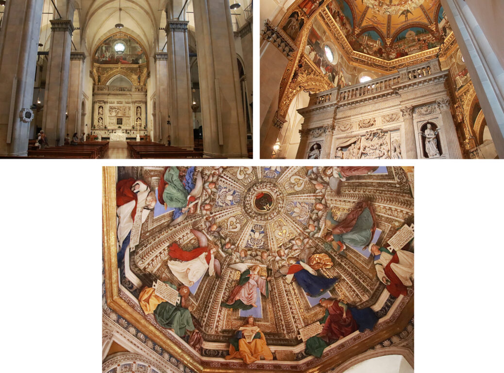 La casita de Nazaret se conserva en el interior de la basílica, bajo una cúpula menor en la que Melozzo da Forlì y su taller (1477-1479) narran, como si fuera una historieta celestial, las distintas etapas del viaje. en el que los ángeles trasladaron la Santa Casa.