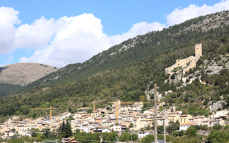 Seguimos hacia L’Aquila, vemos desde la carretera San Pio delle Camere y su castillo, en ruinas desde el siglo XV a causa de la Guerra de l’Aquila